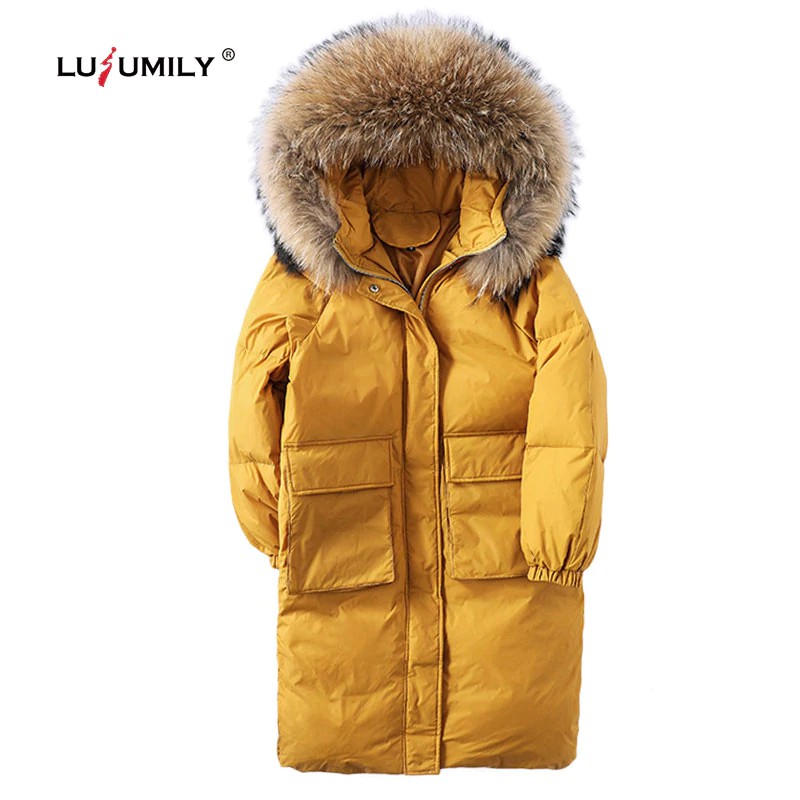 Grosir Lusumily 2019 Down Jacket Winter Coat Women Super Warm Big Fur Hooded Solid Jackets Female Shopee Indonesia