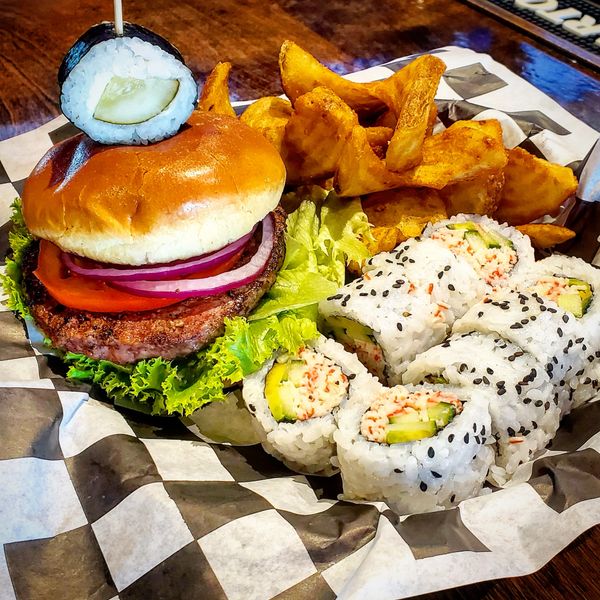 Its called the sushi burger and our mouths. And I swear about 25 years ago the place used to be some Teriyaki Burger joint. On the sushi side we procure the freshest and sweetest seafood possible to obtain and craft both classic rolls such as California our own signature rolls nigiri and sashimi.