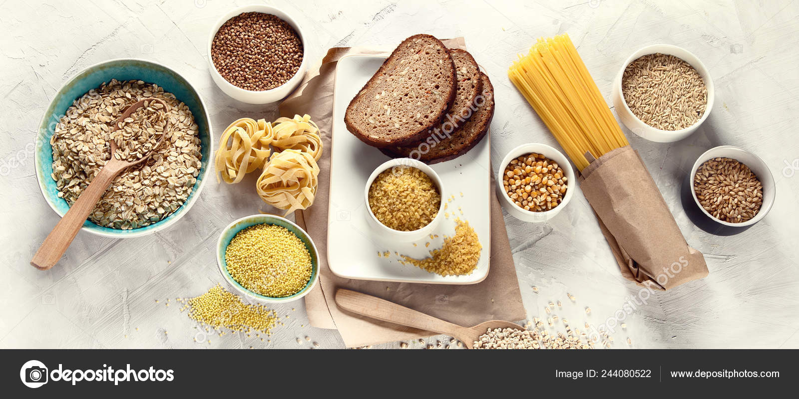 Different Types Cereals Grains High Dietary Fiber Foods Panorama Banner Stock Photo Image By C Bit245 244080522